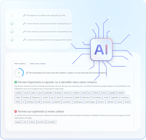 Notre technologie propriétaire SmartKeyword intègre toute la donnée SEO pertinente :